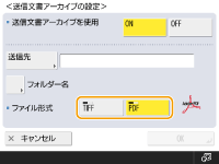 <送信文書アーカイブの設定>を<ON>に設定した場合は、ダイレクト送信できません。 以下の場合は本設定は自動的に<OFF>へ設定が変更されます。必要に応じて宛先を再指定したり、設定を<ON>に戻したりしてください。 バックアップ先の宛先をアドレス帳から削除した場合 リモートUIから宛先表のインポートを行った場合設定データをインポート/エクスポートする アドレス帳管理ソフトからアドレス帳を受信した場合<アドレス帳管理ソフトからのインポート/エクスポート> |
