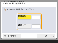 暗証番号を入力し、<確認入力>を押します。確認のため、再度暗証番号を入力し、<OK>を押してください。