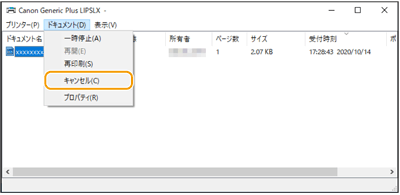 リストに表示がない文書は、すでに本機にデータが送られているため印刷を中止することはできません。