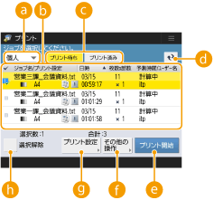 <プリント待ち>/<プリント済み>/<予約プリント>印刷してない文書を選ぶときは、<プリント待ち>が選ばれていることを確認してください。
