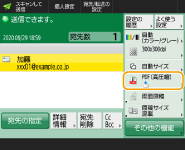 指定した宛先の総数を確認するには画面右上に、指定した宛先の総数が表示されます。送信前に宛先の数に誤りがないか確認することができます。 ![]() 送信中のジョブをすぐに中止するには送信中に操作パネルの (ストップ)を押すと、<以下の送信ジョブを中止しますか?>というメッセージが表示されます。<はい>を押して、送信を中止します。中止したい送信ジョブは、<最後に投入したジョブ>または<送信中のジョブ>を選択することができます。<ストップ押下時に中止するジョブ> 送信ジョブが複数あるときに (ストップ)を押すと、中止対象の送信ジョブが画面に表示されます。中止したい送信ジョブが表示されていないときに<他のジョブを確認>を押すと<送信ジョブ一覧>が表示されます。中止したい送信ジョブを選択し、<中止>を押してください。送信/保存状況を確認するには<状況確認>画面で送信/保存状況を確認できます。状況を確認したうえで、もう一度送信/保存しなおしたり、送信/保存を中止したりすることができます。スキャンの状況や履歴を確認する <ジョブ受付時の確認表示>が<ON>に設定されている場合は、送信ジョブが受け付けられたあとに表示される以下の画面から、<状況確認>画面を表示させることができます。<ジョブ受付時の確認表示> ![]() 送信/保存結果のレポートをプリントするにはスキャンの基本画面で<その他の機能> <送信結果レポート>を押すと、送信/保存結果が記載されたレポートが自動的にプリントされるように設定できます。<その他の機能>からジョブごとに設定するためには、<送信結果レポート>で<エラー時のみ>または<OFF>を選択し<「その他の機能」 でのプリントを許可>を<ON>にする必要があります。 ファイル名について送信/保存されるファイルは、次の形式でファイル名が設定されます。異なるファイル名が付くように設定を変更することもできます(ファイル名を設定する)。 Eメール送信時 「1042_001.jpg」など、「受付番号(4桁)_ページ番号(3桁).拡張子」の形式 ファイルサーバー保存時 「20151030133541.jpg」など、「年月日時分秒(14桁).拡張子」の形式 Eメールの件名について<省略時の件名>に入力されている件名が自動的に設定されます(<省略時の件名>)。異なる件名を指定するときは、設定を変更するか、送信時ごとに指定します(Eメールの設定をする)。 |