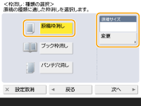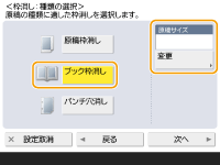 <ブック枠消し>を押し、<原稿サイズ>を確認する