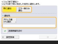 通知先を<アドレス帳から選択>で選ぶ場合は、あらかじめ送信先を<アドレス帳>に登録しておく必要があります。アドレス帳に宛先を登録する