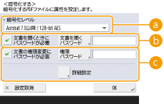 (<Acrobat 6.0以降/128-bit RC4>、<Acrobat 7.0以降/128-bit AES>、<Acrobat 9.0相当/256-bit AES>、<Acrobat 10.0相当/256-bit AES>選択時に表示)