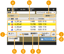保存されているファイルやフォルダー