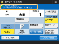 ホームの<保存ファイルの利用>を押したあと、<ネットワーク>、<メモリーメディア>のいずれかを押してファイルをプリントしようとすると、次の設定画面が表示されます。