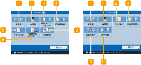 機能によっては、詳細については<コピー>の機能を参照しています。 |