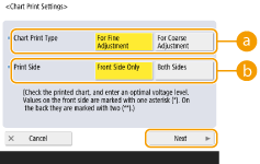 In the <Adjust Secondary Transfer Voltage> screen, enter the number confirmed in the chart.