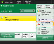 To select a destination from the <One-Touch> screen after scanning, set <One-Touch> for <Default Screen>. The work required for sending scanned documents to the same destination can be reduced. <Default Screen> The destinations registered in the one-touch buttons of the server machine are updated in the following times: When a fax job has been sent on the client machine When you press (Reset) on the client machineWhen Auto Reset is activated on the client machine |