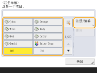 在单触按钮中注册的接收方可以合并为一个群组并注册为一个接收方。有关详细信息,请参阅 在单触按钮中注册一个群组。 要更改或删除单触按钮中注册的接收方信息,请参阅 编辑单触按钮中的注册接收方。 存储于单触按钮中的接收方也会显示在“本地地址簿”中。 |