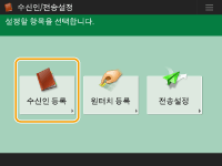 ![]() | 스캔한 문서를 전송할 때 사용할 수 있는 수신자의 팩스 번호나 이메일 주소를 주소록에 등록할 수 있습니다. 또한 I-팩스 수신인, 파일 서버 폴더 위치(IP 주소 및 경로) 및 Canon 복합기의 저장소(고급 박스)를 주소록에 수신인으로 등록할 수 있습니다. |