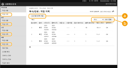 복사, 인쇄, 전송, 수신 또는 저장된 문서의 로그를 표시할 수 있습니다.