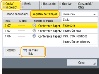 1 | Pulse <Guardar> <Registro de trabajos> <Imprimir lista>. |