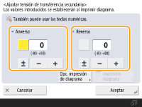 En la pantalla <Ajustar tensión de transferencia secundaria>, introduzca el número confirmado en el diagrama.