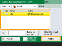 Solo pueden especificarse destinos de correo electrónico desde la libreta de direcciones de un dispositivo móvil. Para utilizar esta función, deberá instalar la aplicación "Canon PRINT Business" en su dispositivo móvil. Utilizar el equipo a través de aplicaciones |