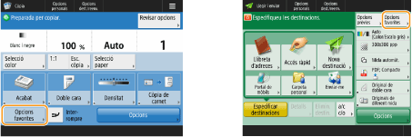 Si utilitzeu amb freqüència la mateixa combinació d'opcions per a la còpia, fax i lectura, convé tenir aquestes opcions desades com a <Opcions favorites>.