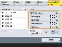 Podeu comprovar la quantitat restant de consumibles des de Remote UI (IU remota). Comprovació de l'estat de l'equip