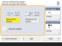 Když kopírujete originál, který již má formát brožury, jako originál vytištěný na stroji s použitím funkce kopírování brožury, stiskněte <Neskenovat do brožury>.