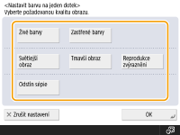 <Vyvážení barev> se automaticky mění podle toho, jakou kvalitu obrazu zvolíte.Vyberete-li <Odstín sépie>, volba <Jedna barva (odstín sépie)> se zobrazí v nabídce <Vybrat barvu> na obrazovce základních funkcí.