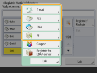 Hvis LDAP-serveren allerede er registreret i maskinen (Registrering af LDAP-serveren), kan du søge efter modtagere og registrere dem i hurtigkaldstaster. Tryk på <Indstillinger for Dest./Videres.>