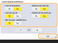 Der genereres lyd, når der udføres en ugyldig tast/knaphandling, eller når du indtaster et tal, der ligger uden for det gyldige indstillingsområde