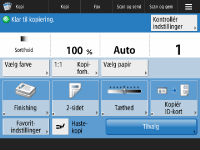 , der vises på <Hjem>-skærmen, og skærmen Grundlæggende funktioner, for at tilpasse skærmbilledet, som f.eks. omarrangement af knapper eller oprettelse af en genvejsknap. Tilpasning af touchpanelet