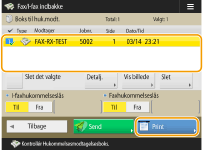 Printning af dokumenter i hukommelsesboksen til modtagelse