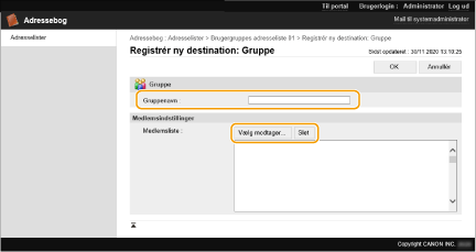 Du kan også administrere brugergruppeadresselister ved kun at give brugere med administratorrettigheder mulighed for at registrere/redigere destinationer fra Remote UI (Brugerinterface til fjernbetjening). <Brug Brugergruppes adresseliste>