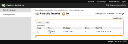 Du kan anvende Remote UI (Brugerinterface til fjernbetjening) til at printe, sende eller slette faxer og I-faxer, der midlertidigt er gemt i fax/I-fax-indbakken.