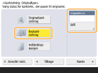 Justering af farven <Originalformat>, er anderledes end det formatet på bogen, skal du trykke på <Skift> for at vælge formatet. Det er kun de originalformater, der vises på touchpanelet, der kan scannes.