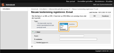 Selecteer het type bestemming en klik op [Instellen].