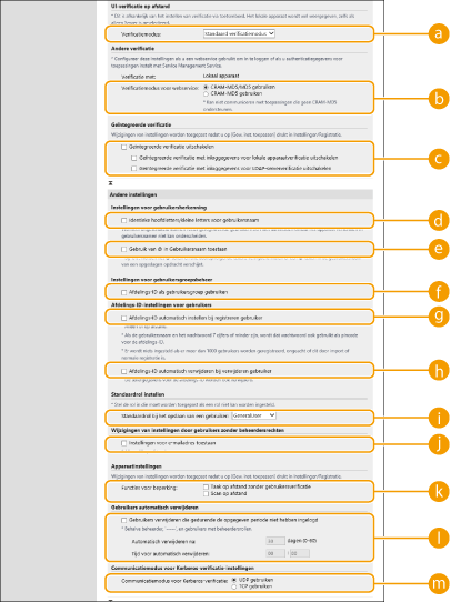 Schakel het selectievakje voor [De gebruikersverificatiefunctie gebruiken] in en geef de benodigde instellingen op.