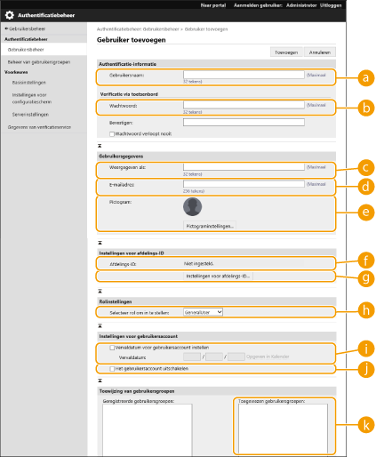 Kan niet worden gewijzigd. Dit is de groep waartoe de gebruiker behoort die wordt geregistreerd na het voltooien van de serververificatie.
