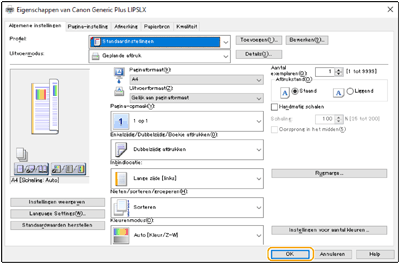 Geef zo nodig de afdrukinstellingen op en klik op [OK].