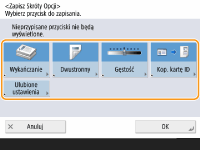 Zmiana ustawień domyślnych na ekranie podstawowych funkcjiPo zmianie ustawień poszczególnych funkcji możesz zarejestrować aktualne ustawienia jako domyślne na ekranie podstawowych funkcji, naciskając
