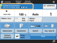 Wyświetla status ustawień, takich jak proporcja kopiowania, format papieru i liczba kopii. Upewnij się, że potwierdzono ustawienia, aby rozpocząć prawidłowy proces kopiowania. Aby zmienić ustawienia, należy nacisnąć na przycisk znajdujący się pod wyświetlaną sekcją.