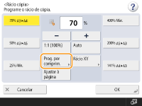 Ao copiar com um rácio de cópia idêntico para papel com o mesmo formato do original, as extremidades do original copiado poderão não ser completamente apresentadas. Para evitar isso, reduza tamanho da imagem carregando em <Rácio de cópia>