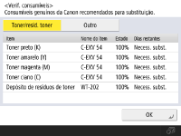 Pode verificar a quantidade restante de consumíveis a partir da Remote UI (Interface Remota). Verificar o Estado da Máquina
