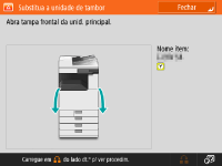 Carregue em <Fechar> quando acabar de substituir a unidade de tambor.