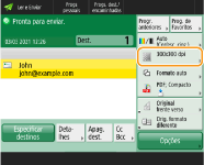 Para verificar o número total de destinos especificadosO número total de destinos especificados é apresentado na parte superior direita do ecrã. Isto permite-lhe confirmar se o número de destinos está correto antes do envio.