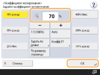 Если при копировании коэффициент масштабирования копии совпадает с форматом исходного оригинала, небольшая часть изображения у краев копируемого изображения может отсутствовать. Чтобы избежать этого, уменьшите размер изображения. Для этого последовательно нажмите <Коэфф. копирования>