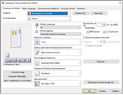 Укажите необходимые параметры печати и нажмите кнопку [ОК].