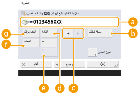 يمكنك تسجيل أسماء المجالات المستخدمة بشكل متكرر في <الأحرف المسجلة> على لوحة المفاتيح، ويمكنك استدعاؤها عند إدخال عنوان فاكس الإنترنت. <الأحرف المسجّلة للوحة المفاتيح>