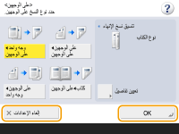 في الجزء السفلي الأيمن لعرض شاشة الإعداد. عند إجراء الإعداد، تُعرض حالة الإعداد في القسم العلوي من الزر ويتغير لون القسم السفلي.