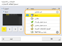 يمكنك إنشاء زر اختصار للوظائف في الشاشة <الرئيسية>. استخدم هذا الزر للوصول إلى وظيفة مختلفة دون العودة إلى الشاشة <الرئيسية>. لإنشاء مختصر، سجّل الدخول باستخدام امتيازات مسؤول.