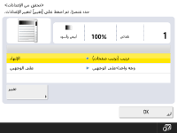 إذا تم ضبط <التحديد التلقائي لمصدر الورق> على <إيقاف> لمصدر ورق معين، فلا يمكنك عمل نُسخ على الورق المحمل في مصدر الورق هذا عند ضبط <تحديد ورق> على <تلقائي>. <التحديد التلقائي لمصدر الورق>