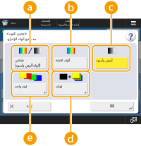 يُمكنك تحديد وضع الألوان المناسب للنسخ. يتيح لك هذا، على سبيل المثال، توفير مسحوق الحبر وذلك بنسخ المستندات الأصلية بالأبيض والأسود، أو نسخ تذاكر بلون واحد مثل الأحمر أو الأزرق لتحديد التاريخ الذي سيتم فيه توزيعها.
