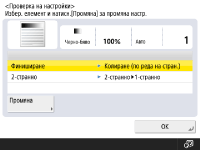 Когато екранът за избор на формат на оригинала се покажеАко <Избор на хартия> е зададено на <Авто>, екранът за избиране на формат на оригинала може да се покаже. Това се показва, защото форматът на оригинала не може да се потвърди и хартията не може да се избере автоматично, когато се поставят силно прозрачни оригинали, оригинали с изключително тъмен основен цвят или оригинали с малък формат. Изберете формата на оригинала или формат, близък до оригинала.