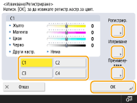 За да извикате регистрирани настройки, натиснете <Извикв./Регистр.>, изберете бутон и натиснете <OK>.