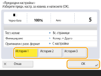 Можете да извиквате използвани по-рано настройки за копиране. Детайлите на извиканата настройка могат да се променят преди копиране.